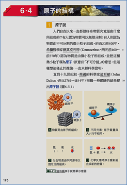 針對臺灣國中自然與生活科技教科書八年級上學期有關原子部分,分析三本市占率高康軒、翰林及南一教科書後發現,都沒有先呈現教學生模型的概念,而是直接教原子模型概念,如圖一所示。