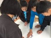 圖十四:用平板進行實驗 圖十五:絞盡腦汁創口訣 圖十六:運用口訣玩配對