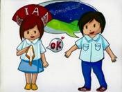 設計口訣時,建議老師可以融入各校的特色元素,讓學生產生共鳴就更容易記住。我設計的7個口訣是以陽離子的諧音進行故事情節聯想,共包含兩位主角三位配角,以天文社和桌遊社的活動為內容,以社團中學長與學妹的對話為橋段。最後將7個獨立情節(口訣)串成一個有意義的故事後,再用畫圖的方式將故事情節表達出來(圖十七到圖十九為其中3個口訣)。以口訣1為例,遇陰離子「全溶」的陽離子為「IA+ H+ NH4+」,諧音為「IA 請安」。故事情節是天文社社長一大早踏進校門時遇見學妹IA(先設計一個名叫IA的理由),當學妹微笑跟學長道早安時,學長就就全溶(陶醉其中)了。