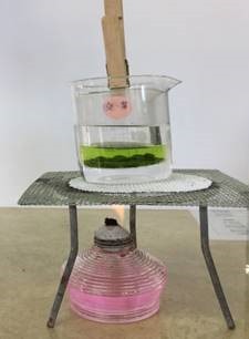萃取葉綠素實驗:使用相同面積的葉片,置於酒精中,再用隔水加熱法,萃取葉綠素。 |