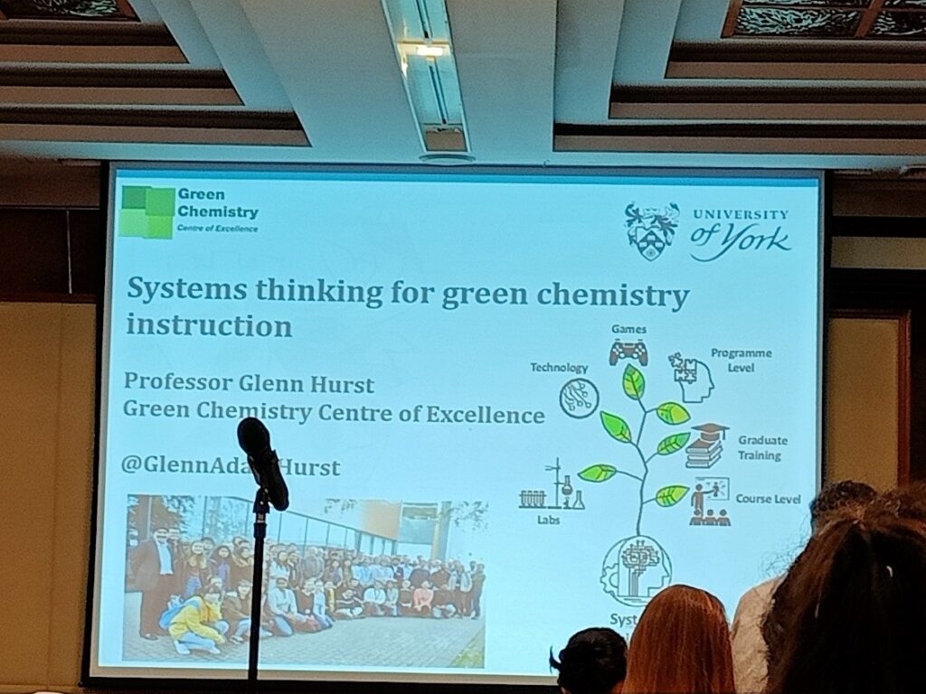 Glenn Hurst 是一位致力於綠色化學系統思維的教授,他講述了系統思維是以學生為中心的教學方法,幫助學生理解化學中的子系統,再連結成一個整體性的系統思維模式,有助於學生釐清和理解問題。將系統思維應用於綠色化學,可以實現聯合國永續發展(SDGs)的目標。例如製造化學產品時,需要考慮產品的週期、對人類或環境的好處或毒害、回收或重複使用的循環過程,也就是從產品原材料的提取到製造、銷售、使用和產品最終生命,都需要進行一系列的系統思考。