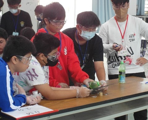 在競賽實驗操作方面,本競賽試題的活動一(有效率的射遠高手)和活動二(氣球在密閉瓶中膨脹)的步驟設計採用結合詳述的(expository)和基於問題的(problem-based)實驗模式(Domin, 1999)。進一步說,在競賽手冊中提供大部分詳細的操作步驟,同時納入少部分的開放性思考,尤其在化學藥品使用量方面,並且納入一些半開放性的提示,讓學生有思考並嘗試改善的機會,激發團體集思廣益的潛能。