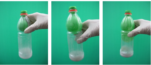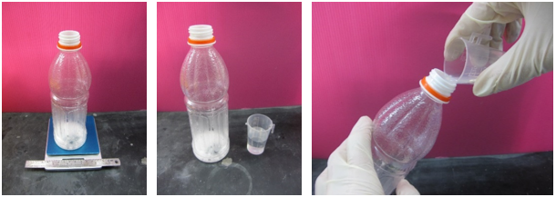 理想氣體定律:理想氣體狀態的方程式為PV = nRT,其中,P為壓力,V為體積,n為氣體物質的量(通常是莫耳),R為理想氣體常數,T為絕對溫度。由PV = nRT可推知,在恆定的體積和溫度下,在密閉系統中氣體壓力與莫耳數(或分子數)成正比,亦即氣體莫耳數(或分子數)增加,氣體壓力隨之增加(維基百科,2024a)。就本實驗而言,在寶特瓶中加入檸檬酸和碳酸氫鈉並加水產生二氧化碳,立即塞住矽膠塞形成密閉系統。此時瓶內二氧化碳氣體分子增多,進而其壓力隨之增加。