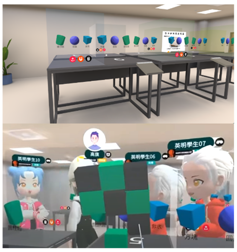 | (A)在元宇宙中直接跳轉進入教材 | (B)學生進行虛擬實驗操作過程 |