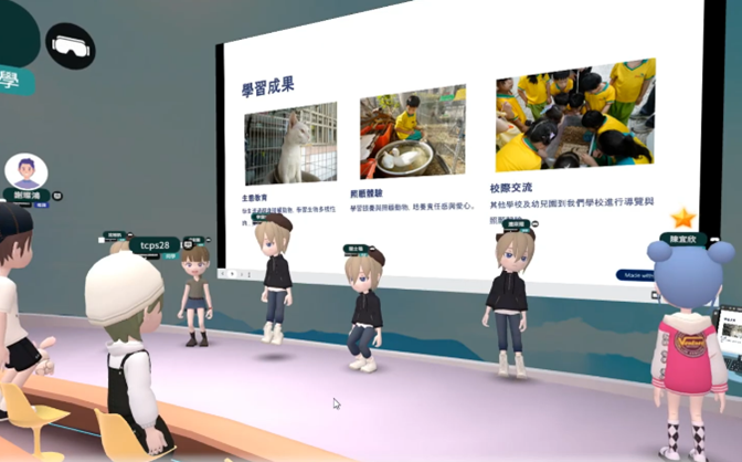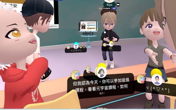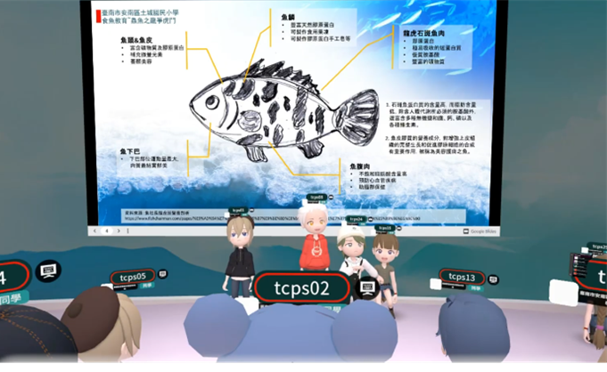 第三,在跨域與人文融合上,土城國小與重溪國小將海洋生態、陸域生態、地方產業與聯合國永續發展目標(Sustainable Development Goals, SDGs)結合於元宇宙課程中,學生以3D建模、Padlet紀錄與虛擬展區發表作品。教師整理學生於課後口述的反思心得中指出:「孩子不只是學知識,而是在建構與理解後,說出自己的故事。」這樣的設計讓科技成為情感表達與社會連結的媒介。第四,在教育公平與共學實踐方面,元宇宙平臺打破地域與設備限制。多校同步進行課程互動,學生以虛擬分身在共同學習區進行報告與討論,偏鄉學校能分享課程師資、不同的背景環境資源,並增加不同學習觀點的刺激,激發更多靈感與創意(Wang, 2025)。