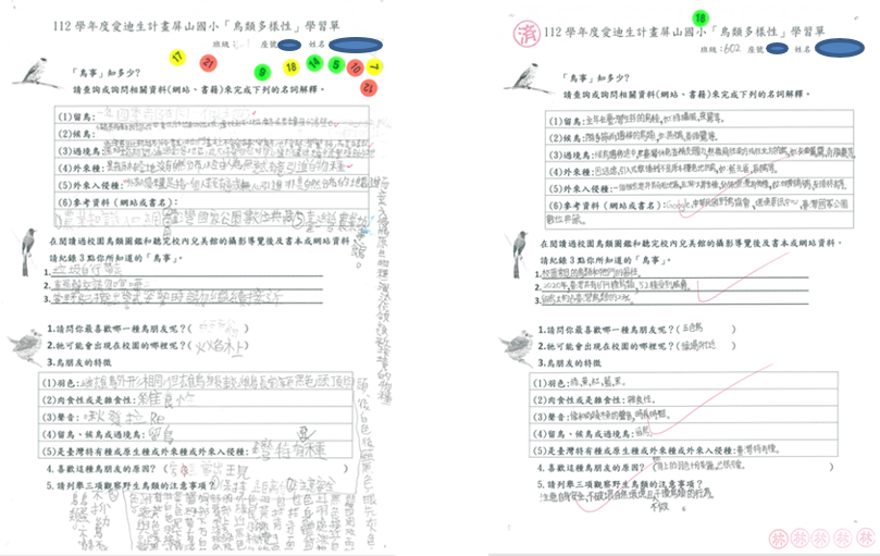 學生鳥類的拍攝來源是筆者於校內的兒童美術館鳥類攝影常設展的攝影作品為主。這樣學生練習翻拍與使用AI進行判別時,就不會容易出錯與產生迷思。感謝筆者任職學校同仁和場地的優質條件,有利發展這公民科學的微課程。